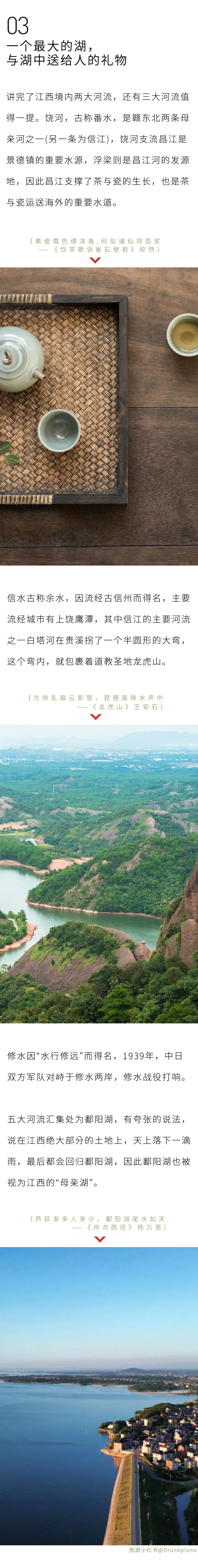 最适合江西的形容词找到了!2024-08-18 06:17 阅读 文旅中国 吴头楚尾,赣鄱大地,江西有瓷,水与火锻出纯粹青蓝,江西有茶,匡庐云雾绕山水,江西有酒,杯中盛满诗人的远方,才子撑起大半个宋朝,货品出口要顺着水路而行。 山是江西的脊梁,水是魂,黄庭坚写江西的水:“我穿高安过萍乡,七十二渡绕羊肠。”苏东坡把江西水写得如同出自观音菩萨的净瓶:“竹中一滴曹溪水,涨起西江十八滩。” 古往今来,山与水均是灵秀,而占据中国最多山的江西,所拥有的水的灵性,是上苍赋予这座城市最不朽的礼物。 编辑:陈笑笑 审核:惟明 打开APP阅读全文