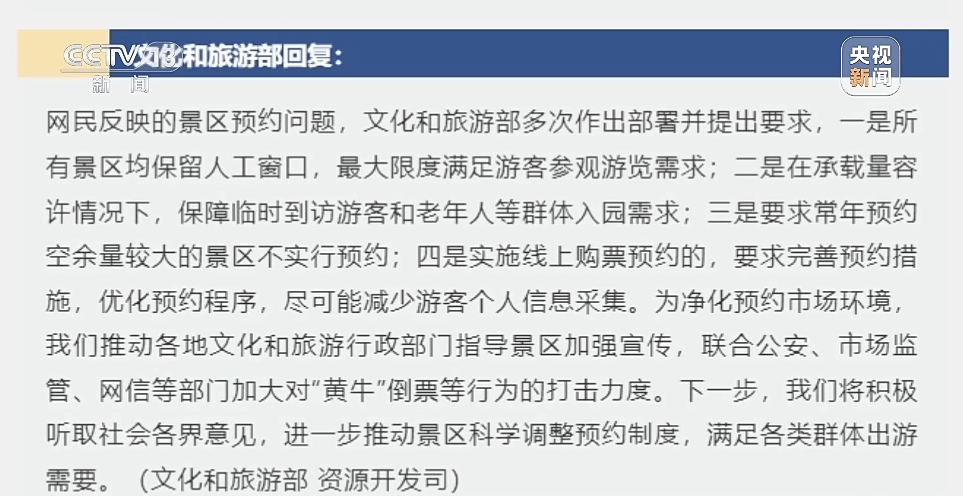 中国文化和旅游研究中心研究员 北京第二外国语学院 刘思敏:常年如果都是供不应求的就常年预约,预约的手段以网上为主,能够保证有计划的人计划能够实现。线下保留一定比例的现场售票,就给一部分临时来旅游的人,即兴来旅游的人一个惊喜的机会。对于有信息差或者老年人,它就是一种善意。