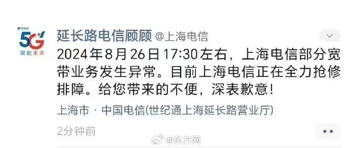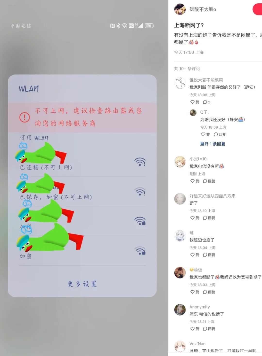 突然大面积断网?上海网友崩溃:“差点买个新的路由器”,上海电信回应→
