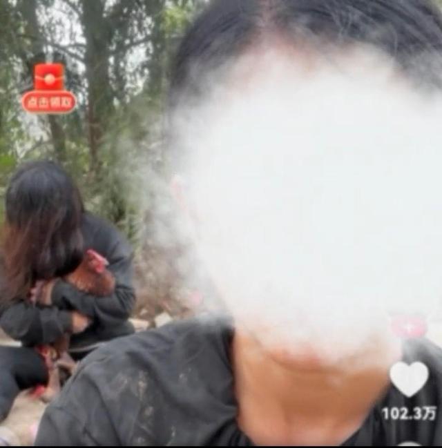 ↑网红直播卖惨,视频中女孩“养母”抱着公鸡自言自语。截自平安沈阳视频
