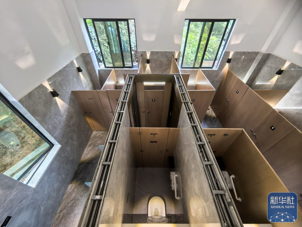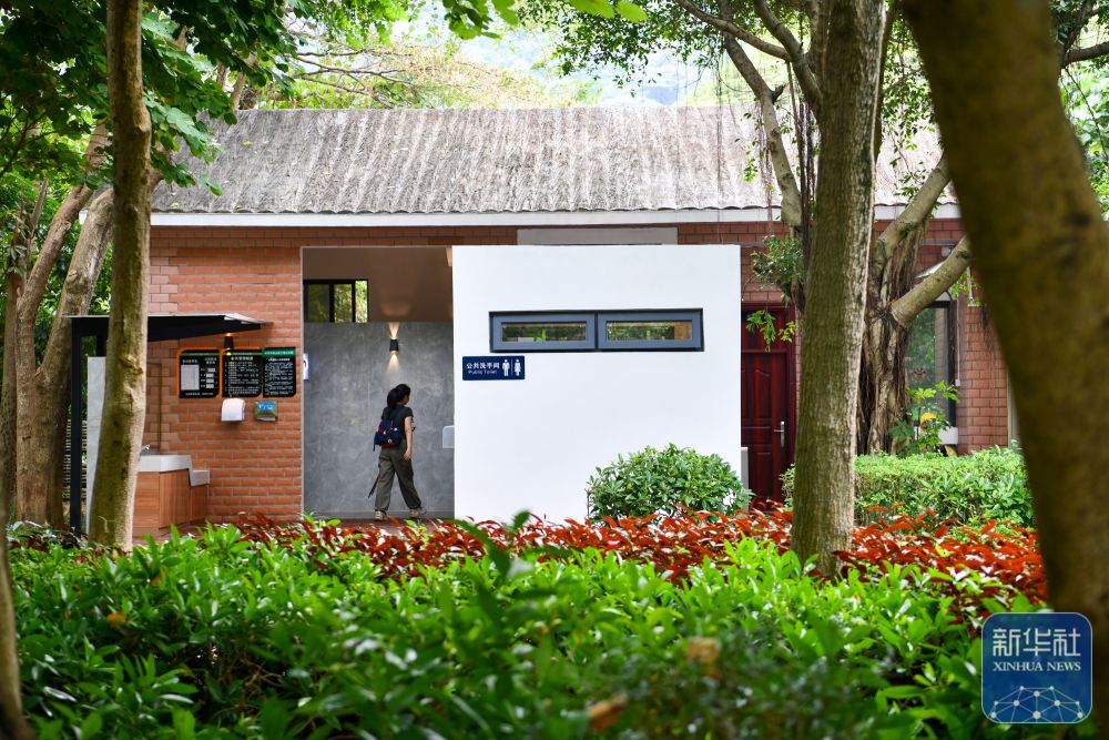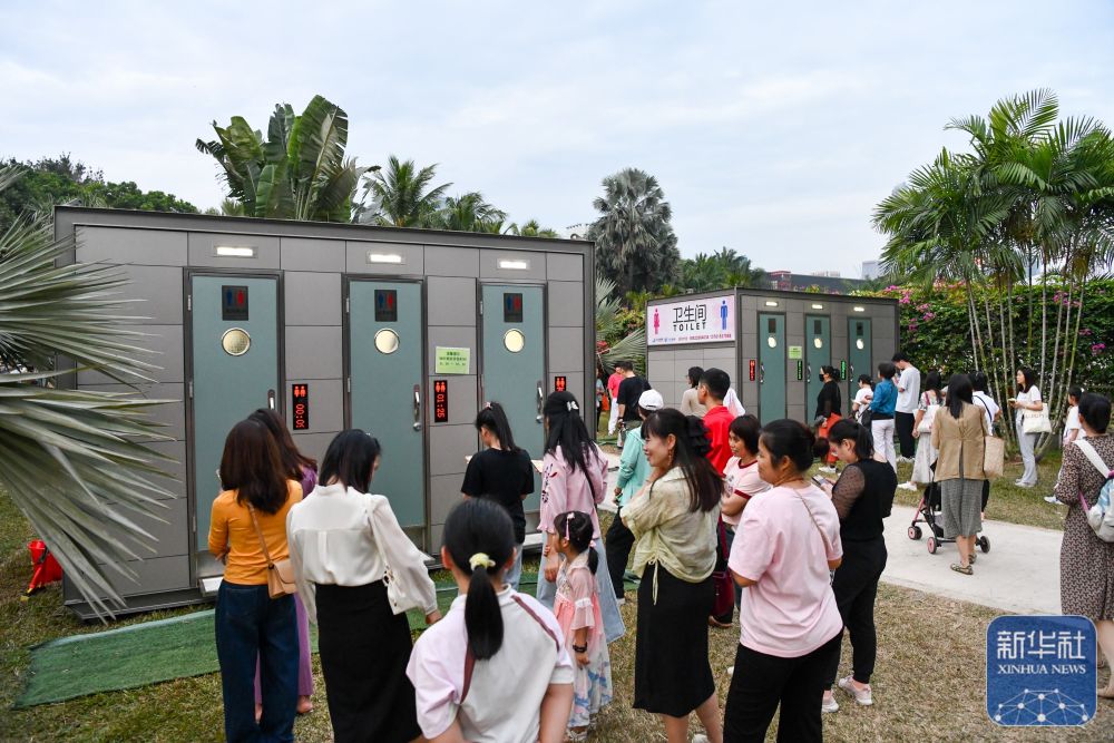 这是11月10日在深圳小南山公园拍摄的“潮汐公厕”外景。该公厕在男女厕位实现1:2的基础上,还在男女厕中间设置两个潮汐厕位,以两道可以上锁的门隔开。当一侧人数较多时,可由工作人员打开连接潮汐厕位的门,缓解厕位紧张状况。2023年,深圳市南山区开始试点“潮汐公厕”,目前已在南山区多个公园内建成6座“潮汐公厕”。