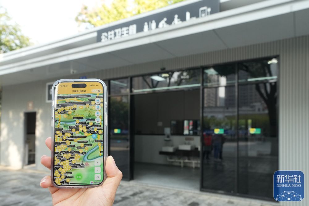 11月13日,工作人员展示长沙市开福区开发的“开福区文旅体云”小程序。小程序内集合了“寻厕”功能,可以帮助人们快速找到最近的卫生间。
