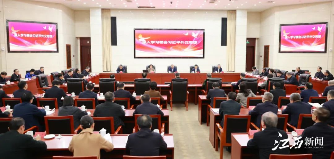 尹弘指出,习近平外交思想,是做好新时代中国外交工作的根本遵循,是我们准确把握形势、应对挑战的“定海神针”,体现了引领大局大势的全球视野,塑造了新时代中国外交的独特风范,展现了以斗争求安全、谋发展的精神品格,彰显了构建人类命运共同体的情怀担当,为解决全球问题贡献了中国智慧和中国方案。我们要深入学习贯彻习近平外交思想,准确把握其核心要义、精神实质、丰富内涵和实践要求,扎实做好新时代地方外事工作。