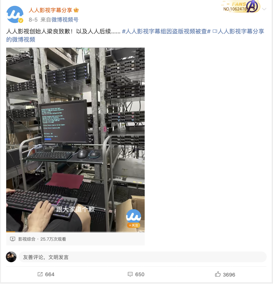 2024年8月5日,“人人影视字幕分享”“人人聊影视”等账号在各大社交媒体同步发布视频。在视频中,人人影视创始人梁良(即梁永平)称,他已重获自由约一个月的时间。