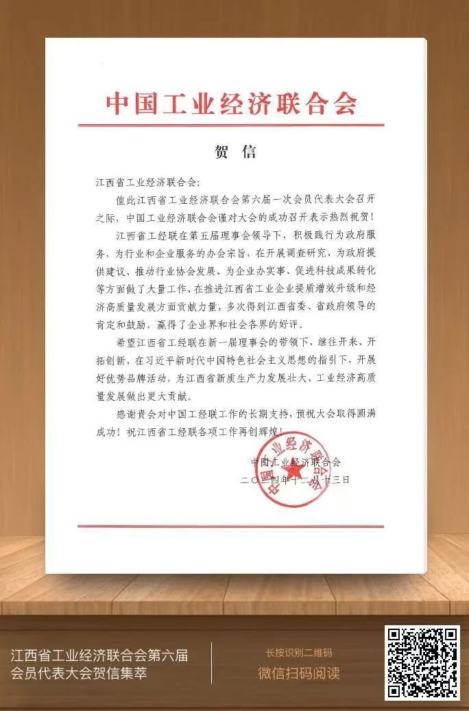 应炯在讲话中,对新当选的江西省工业经济联合会第六届理事会提出了建议,指明了方向,并寄以厚望。他表示,即将过去的2024年,是新中国成立75周年,是实现“十四五”规划目标任务的关键一年。在省委、省政府的坚强领导下,全省工信战线全力以赴拼经济、促发展,工业运行保持持续回升向好态势,经济增长“压舱石”“顶梁柱”作用愈加显现,全省工业和信息化发展迈上了新台阶。省工经联作为党和政府联系全省工业和信息化企业、单位等方面的重要社会组织,地位重要、优势明显。希望省工经联在新一届理事会领导下,坚持政治立会办会,牢记使命、踔厉奋发,找准定位、开拓创新,努力为服务和推动加快建设制造业强省、推进新型工业化展现新作为、作出贡献。他还提出了三点建议:一是提高政治站位,以实际行动拥护“两个确立”、做到“两个维护”。二是彰显姓“工”定位,切实肩负起时代赋予的使命责任。三是做好“联”字文章,充分发挥独特的桥梁纽带优势和作用。他表示,省工信厅将全力支持省工经联发展,更加高效服务工业企业,携手共同加快推进制造业强省建设,努力为谱写好中国式现代化江西篇章贡献工信力量!