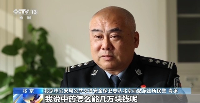 北京市公安局公共交通安全保卫总队北京西站派出所民警肖承:了解这老人是给老伴儿买药,我说买的什么药告诉是中药,我说中药怎么能几万块钱,我说这样吧大爷,我跟您去了解一下这个人在哪儿。