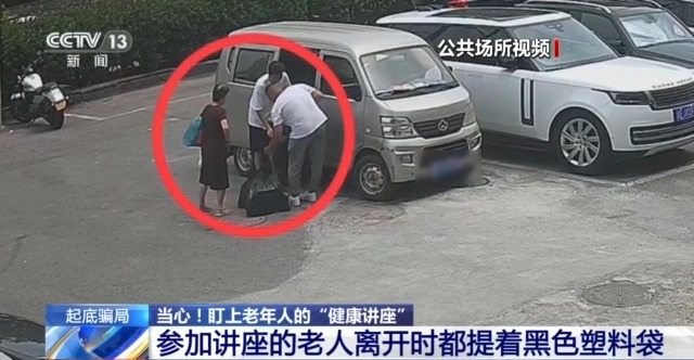 北京市公安局公共交通安全保卫总队刑侦支队民警 赵佳晨:这个讲师把课程讲述完成之后,菜上桌的时候,那时候是比较热闹,大家也会零零散散地一边聊天一边吃饭,这时候这些所谓的工作人员就会凑上前跟老头老太太会说您有没有购买意向,会聊这些东西。如果说有购买意向,出门之后,他们会把一辆装产品的车放在饭馆门口,取上这黑袋子拿走就可以,是这么一个过程。