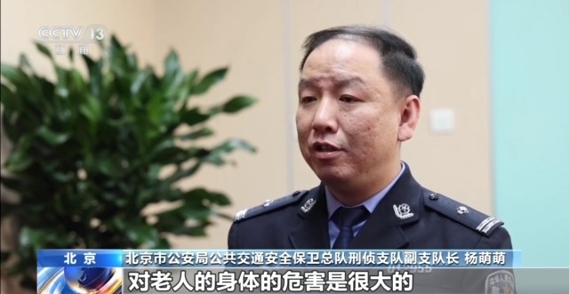 北京市公安局公共交通安全保卫总队刑侦支队副支队长杨萌萌:老年人听信了这些人,去服用他们提供的这些假的保健品,造成耽误了就医,使这些基础病不再去这种正规的医院去看,而相信他们去吃这“药”,放弃了治疗,对老人的身体的危害是很大的。