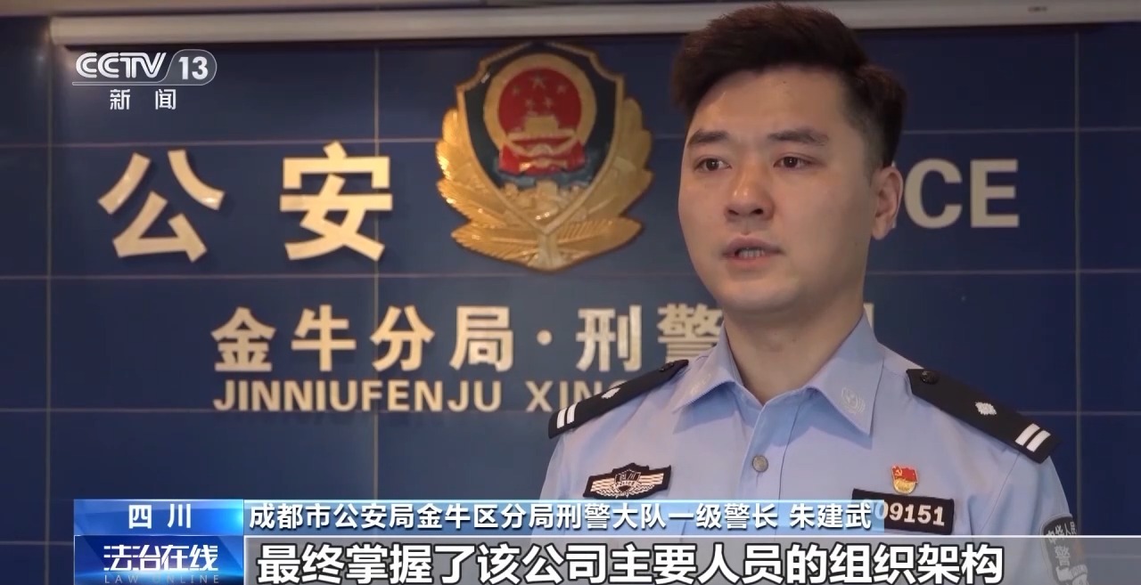 成都市公安局金牛区分局刑警大队一级警长 朱建武:通过对掌握资料深入分析研究,以及询问前期治疗者的情况,发现该公司有虚构“干细胞治疗”骗取钱财的重大嫌疑。之后我们加大对该公司侦查力度,最终掌握该公司主要人员的组织架构。