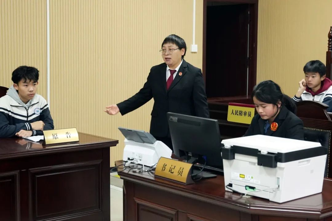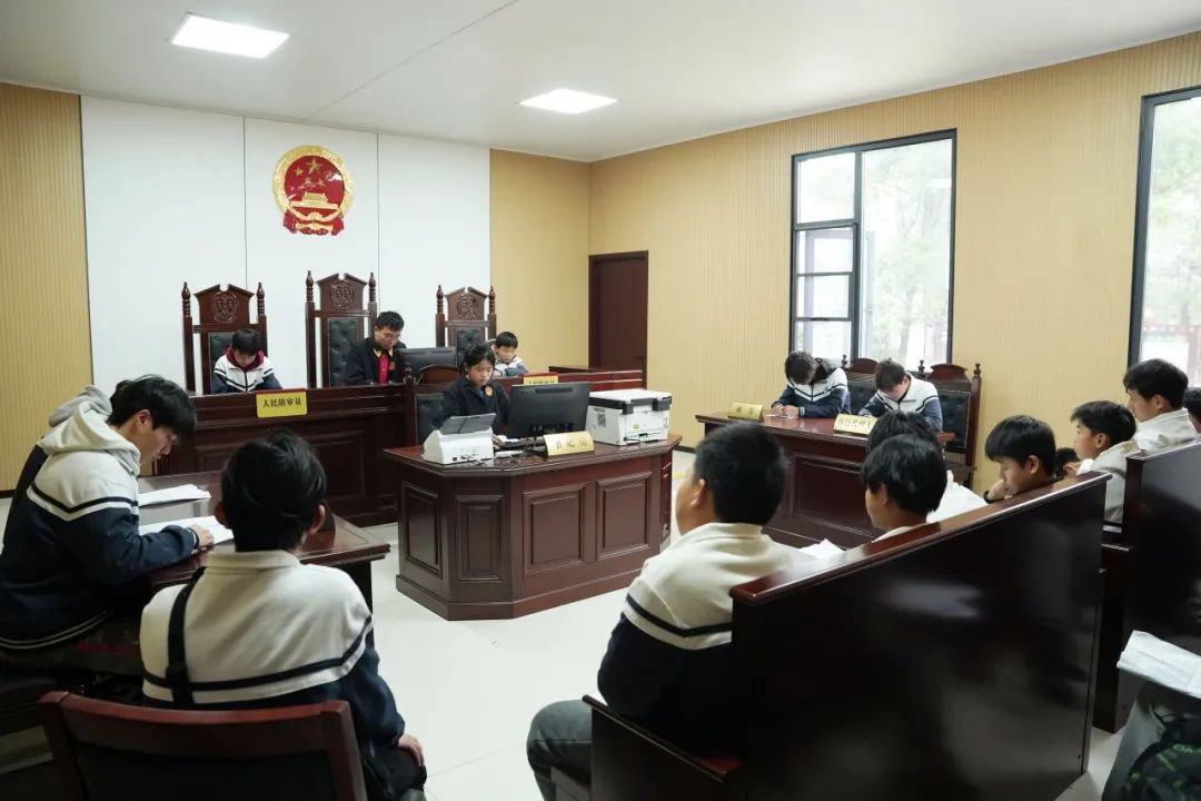 “现在开庭......”伴随着清脆的法槌声,一场特殊的“庭审”开始了。同学们以一起校园内身体权纠纷为脚本,分饰合议庭成员、书记员、原被告及诉讼代理人等角色,在法庭干警的引导完成一场模拟庭审活动。