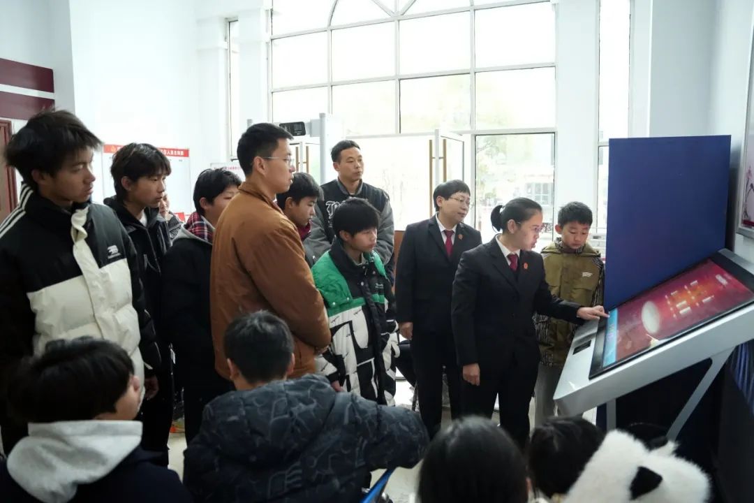 活动开始,法庭干警带领师生们逐一参观了法庭的安检设备、诉讼服务站、审判庭、调解室、法治文化园等区域,并详细介绍了法庭的基本情况、主要职能和相关区域的功能及运行模式,让同学们对法庭工作和法治文化有了深入了解。