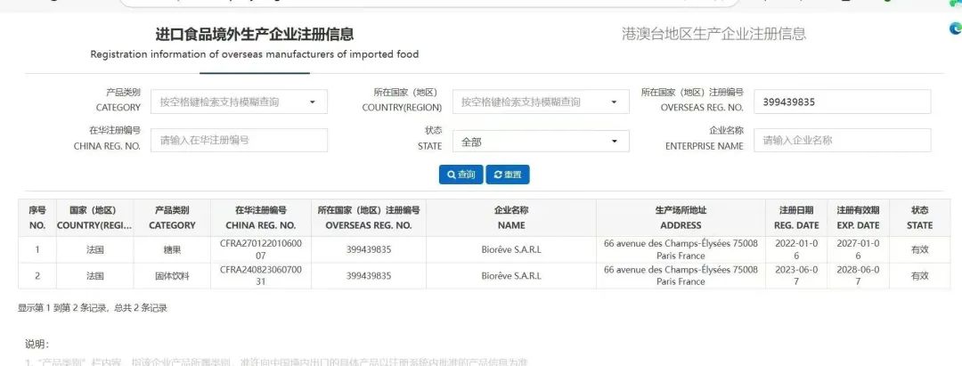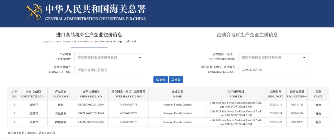 进口食品境外生产企业注册信息查询显示格瑞索产品以糖果为名进口