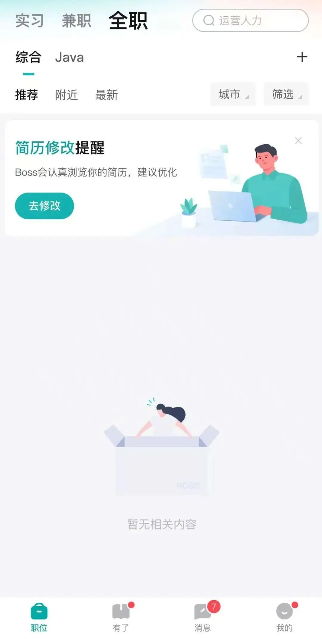 BOSS直聘APP无法刷新招聘信息