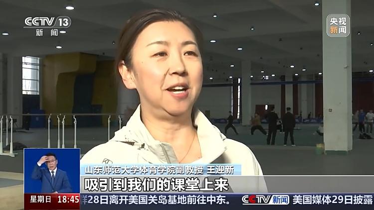 山东师范大学体育学院副教授 王迎新:我们的大学体育课首先要把这些孩子们吸引到我们的课堂上来,来了她们就跑不了了,一个小时的团操课,用形体训练部分过渡到专项有氧健身部分,然后到燃脂,从而达到一堂能够出汗的体育课。