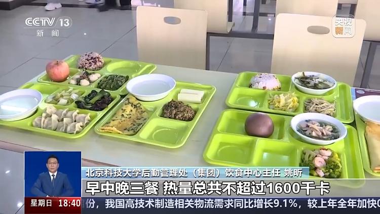 北京科技大学后勤管理处(集团)饮食中心主任 姚昕:1:1复刻咱们卫健委的食谱,早中晚三餐,热量总共不超过1600千卡。蛋白质、脂肪,包括碳水化合物,这种配比是非常合理的。增加了很多新的这种食材进来,比如说像春天应季的这种春笋、蒲公英。看似是一个普通的鸡蛋饼,实际上里面加了牛奶、山药粉、鸡蛋,面粉是全麦面粉,里面的内容是非常丰富。