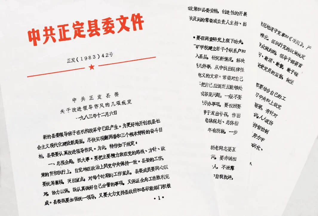 1983年12月6日,正定县委印发改进领导作风“六项规定”。这份“正发(1983)42号”文件,内容共6条,总计1200余字,是习近平担任河北正定县委书记时主持制定的。