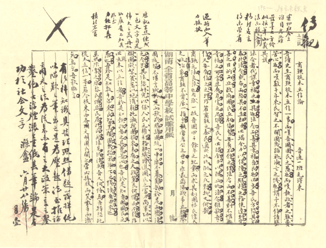 初试啼声,迥异凡响。老师惊叹一个来自农村的中学生能有这样不凡的见解,当即给毛泽东这篇政论文打了100分。作文500余字,小楷书写,深刻论述了以民为本、取信于民的思想,立意高远,论理透彻。