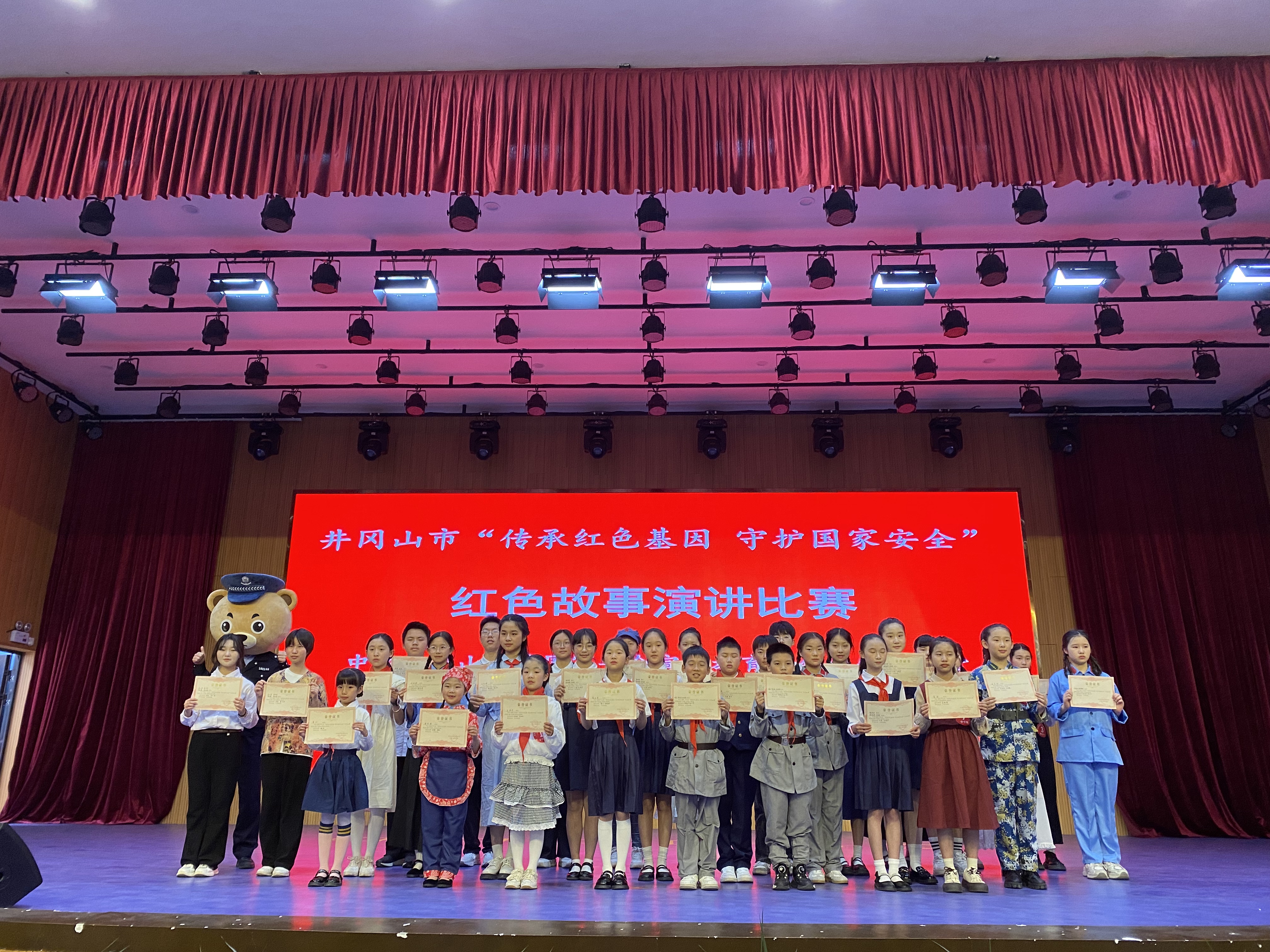 比赛决赛在井冈山小学红伢子剧场隆重举行,来自全市28所中小学的33名选手齐聚一堂,以少年之声讲述红色历史中的国家安全智慧,为现场400余名师生及家长呈现了一场思想与情怀交融的视听盛宴。