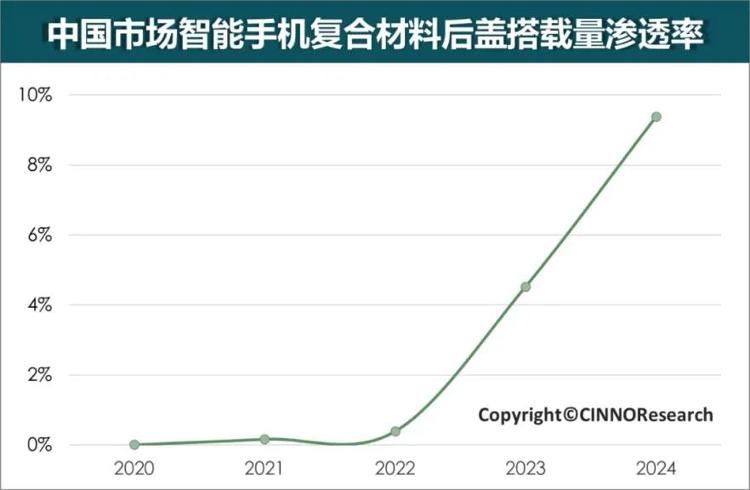 CINNO Research公众号显示,至2024年,随着供应链成熟及成本下探,素皮与玻纤后盖逐步向中低端机型渗透,带动复合材料后盖整体渗透率突破10%,正式跻身主流后盖材料行列。2024年,中国智能手机复合材料后盖销量品牌TOP6(华为、vivo、小米、OPPO、荣耀、真我)合计市占率达96%。