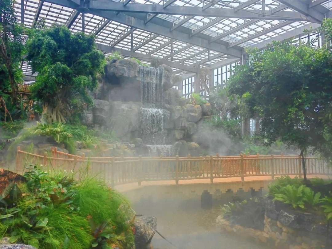超万平米的单体热带雨林温室:以全球雨林风貌为蓝本,模拟雨林生态栖息地,塑造出起伏多变的竖向空间,22米挑高空间里的高山瀑布气势非凡,磅礴壮美。穿梭小径、岛屿秘境、茂密丛林、水上栈道、洞穴探索、树顶行走......充满探索乐趣的体验区域让你认识丰富多样的热带雨林植物,同时让你身临其境感受热带雨林的珍奇神秘。