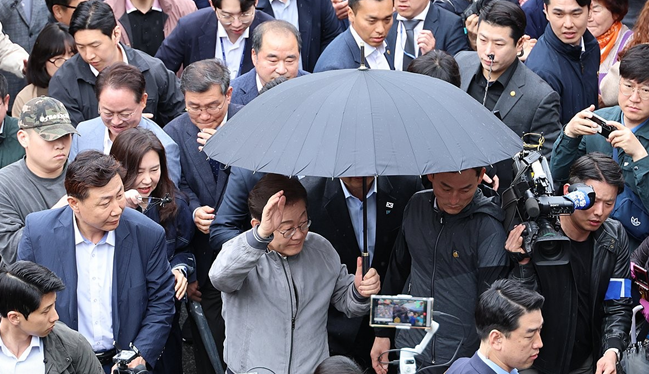 2024年,李在明在釜山出席一场活动时曾遭身份不明人士袭击,当场“流血倒地”;今年3月27日,他在庆尚道视察山火灾情期间,再次被一名男子用外套袭击。