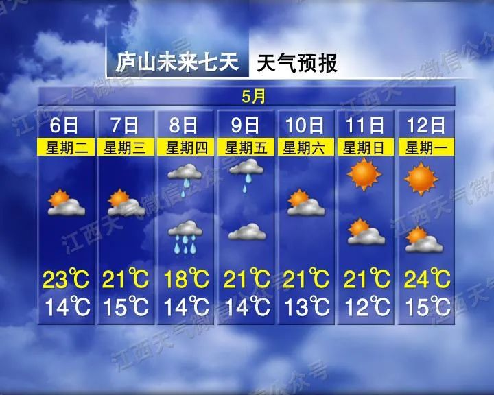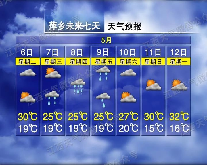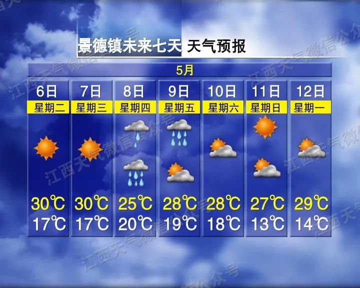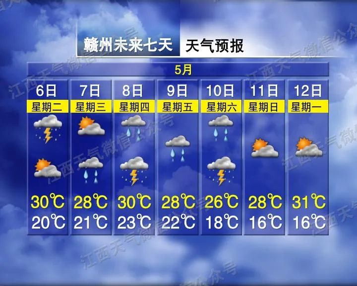 赣南阴天多云,局部地区有阵雨或雷阵雨;赣北、赣中多云间晴天。明天最低温度:赣北和赣中北部17~19℃,赣中南部和赣南20~22℃。