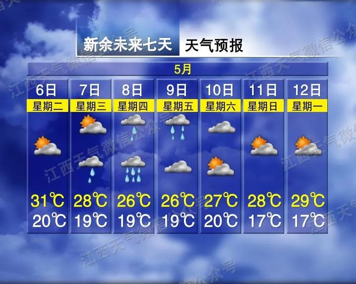 赣州市和吉安、抚州两市南部雨停转多云;全省其他地区多云间晴天。