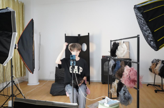 这个约20平方米的直播间,每天都吸引着数万人进入观看。樊佳怡家住在公司附近,工作时间从上午11点30持续到下午6点,除了直播带货,她还会在下班后复盘直播间数据,分析观众的互动热点、下单偏好,为后续直播优化做准备。“很多网友会在评论区提需求,比如‘想要更自然的空气刘海’‘有没有适合短发的补发片’,这些反馈我们都会整理给产品和运营团队。”