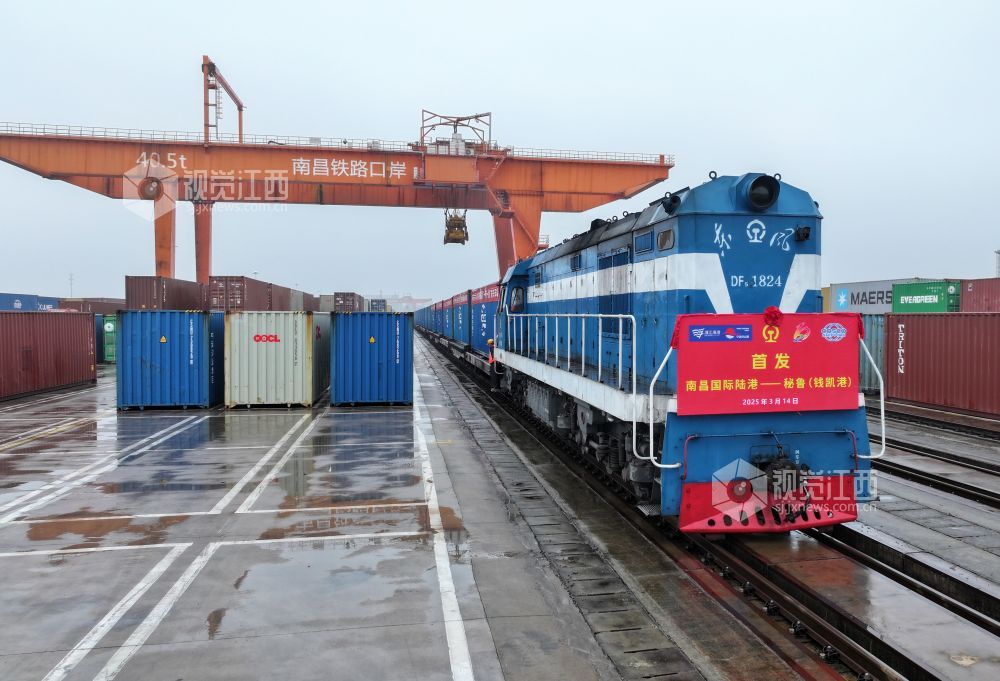 南昌至秘鲁铁海联运班列首发(陈良帅冯尧摄)
