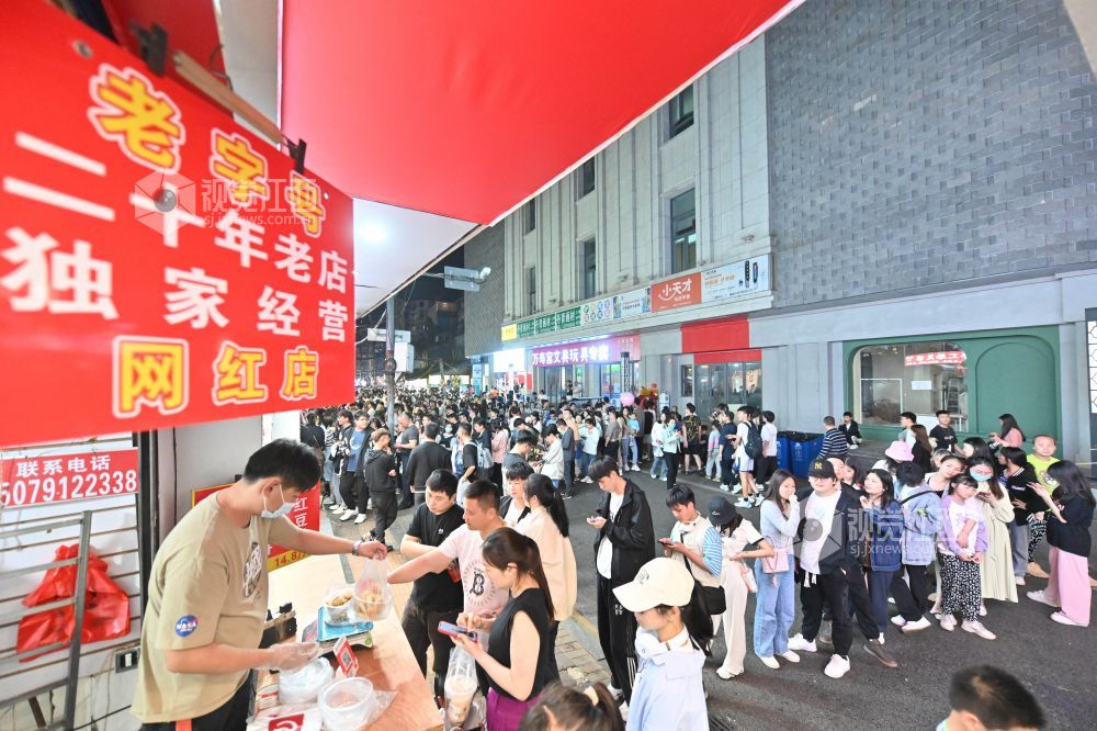 来自全国各地的游客们争相购买南昌的特色小吃(李劼摄)