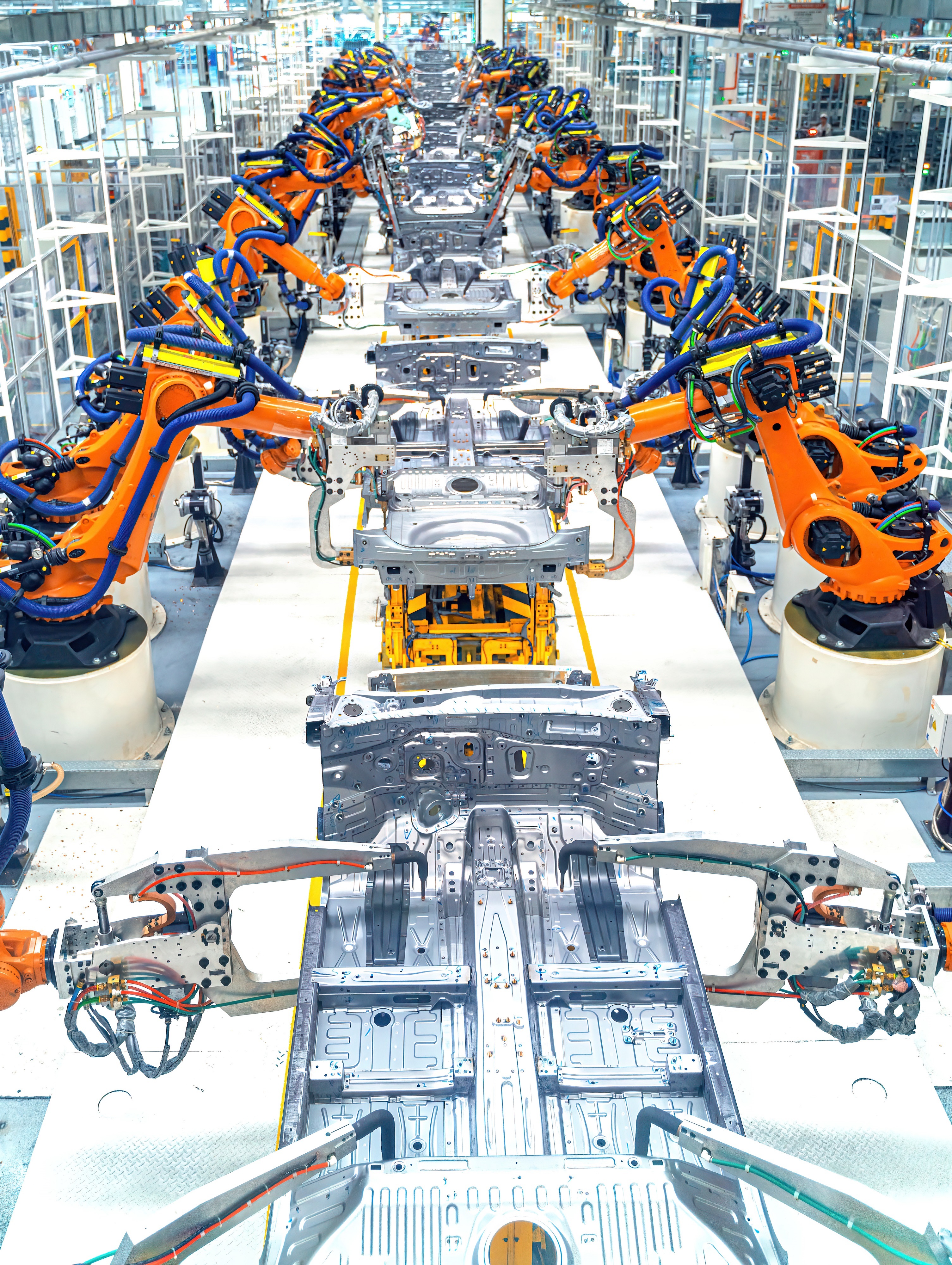 △现代化的汽车制造厂焊接装配线。(图/视觉中国)