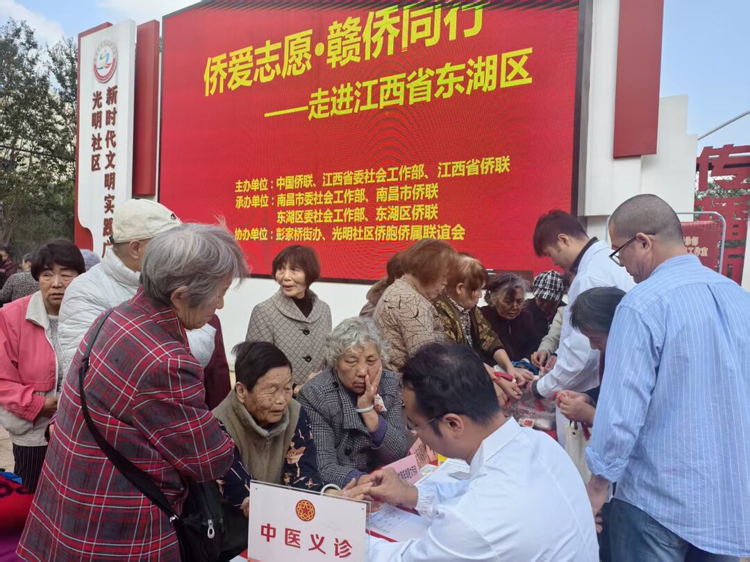成立大会后,“侨爱志愿·赣侨同行”志愿服务活动在南昌市东湖区光明社区开展。活动现场设置健康义诊、“侨爱心·眼健康行”、法律咨询、法治宣传、书法知识宣传普及人工智能科技知识宣传、免费理发、国家安全宣传等多个服务版块,还向群众发放法律书籍100余本,惠及群众近百人,让群众深切感受到侨联组织的温暖与担当。活动期间,参会人员还实地参观调研了南昌市东湖区“侨胞之家”建设情况。