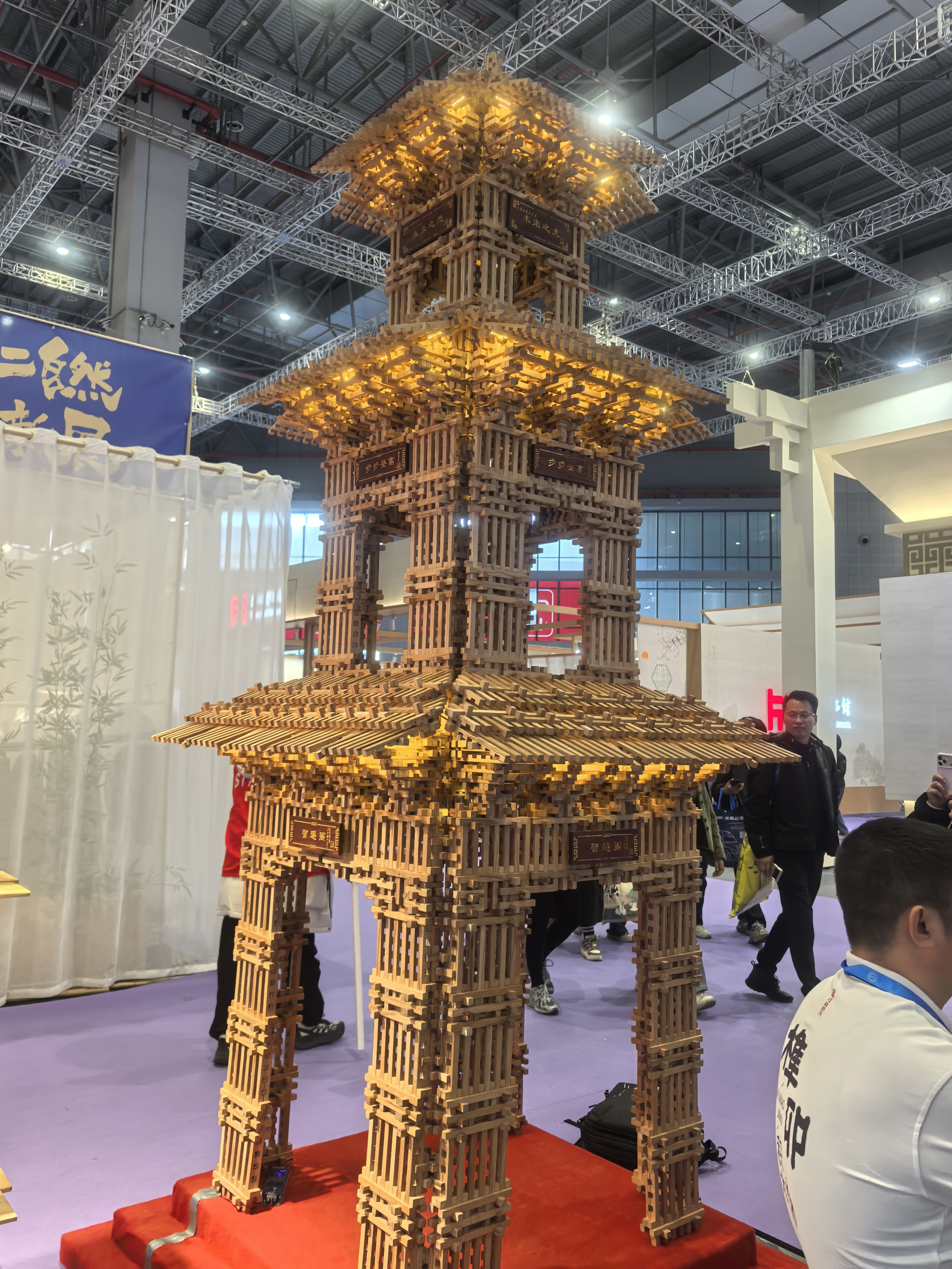 作为江南三大名楼之一,滕王阁因《滕王阁序》声名远播。此次展出的木结构模型,以860厘米面宽、1100厘米进深、980厘米总高的规制,采用精巧榫卯工艺还原古建神韵。模型色彩瑰丽、做工细腻,将千年建筑智慧具象化,成为参观者争相打卡的热门展品。这也是该馆继2021年深圳文博会后,连续4年携“样式雷”系列模型亮相国内重要展会。