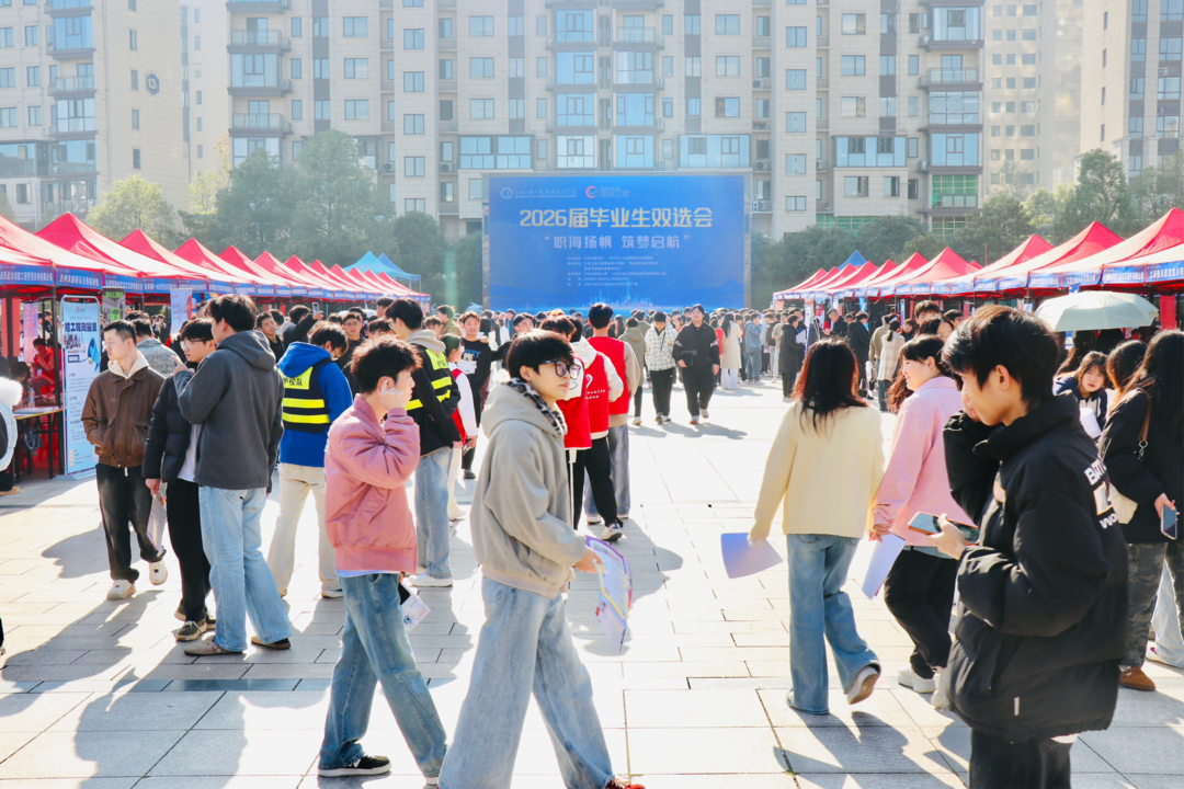 大江新闻讯 周莹报道:11月22日上午,江西工业工程职业技术学院圣贤广场热闹非凡,2026届毕业生校园双选会如期举行。活动线上线下同步开展,设220个现场展位,汇聚省内外优质企业,为4900余名应届毕业生提供机械制造、建筑工程、电子信息等多领域就业岗位,搭建高效求职对接平台。