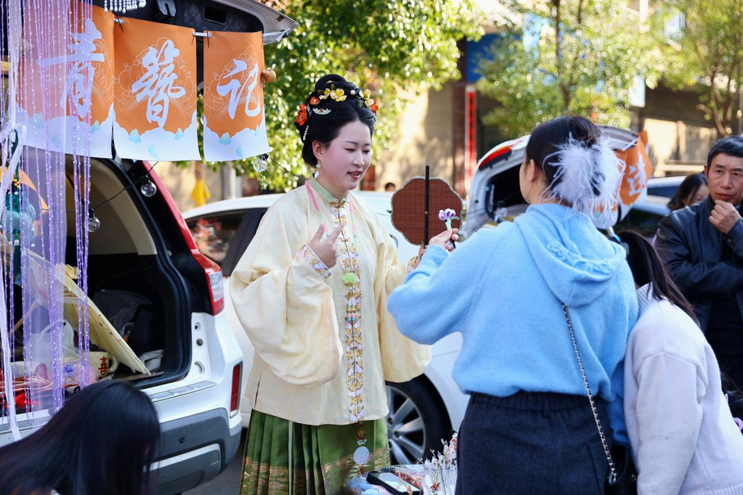 与此同时,“与你蛟集”特色集市也同步开市,热闹非凡。集市内分区明确,在手工艺展示区,村民游客们亲手体验传统手艺竹编、金星砚;农产品展示区摆满了本地种植的优质茶叶、养殖的土鸡蛋和村民自己晒制的特色干货,原生态的食材吸引众人驻足选购;后备厢集市创意十足,村民们打开汽车后备厢,亮出手工饰品、鲜花玩具等特色好物;更有蛟塘文创周边,种类丰富令人驻足;美食区更是香气扑鼻,风味美食让人垂涎,大家边逛边吃,沉浸式感受乡村烟火气。