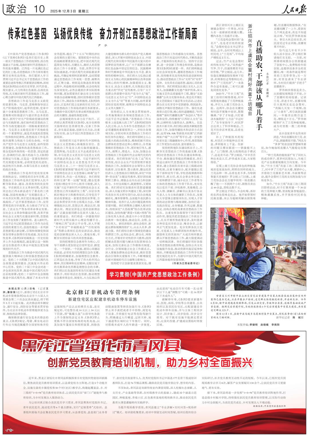 12月3日,省委书记尹弘在《人民日报》第10版发表署名文章《传承红色基因弘扬优良传统奋力开创江西思想政治工作新局面》。