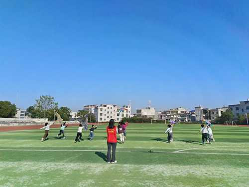 随后的户外活动中,孩子们分组进行了放风筝比赛。他们手持五彩缤纷的风筝在操场上奔跑,在协作放飞中尽情欢笑,现场气氛热烈。接下来的羽毛球接力赛,锻炼了孩子们接球反应能力,也提升了彼此默契。跳大绳环节,孩子们轮流跃入绳中,灵动身影与舞动的长绳构成一幅活泼的画面。一些起初害羞的孩子也在鼓励下加入队伍。
