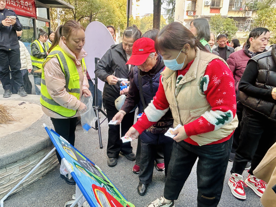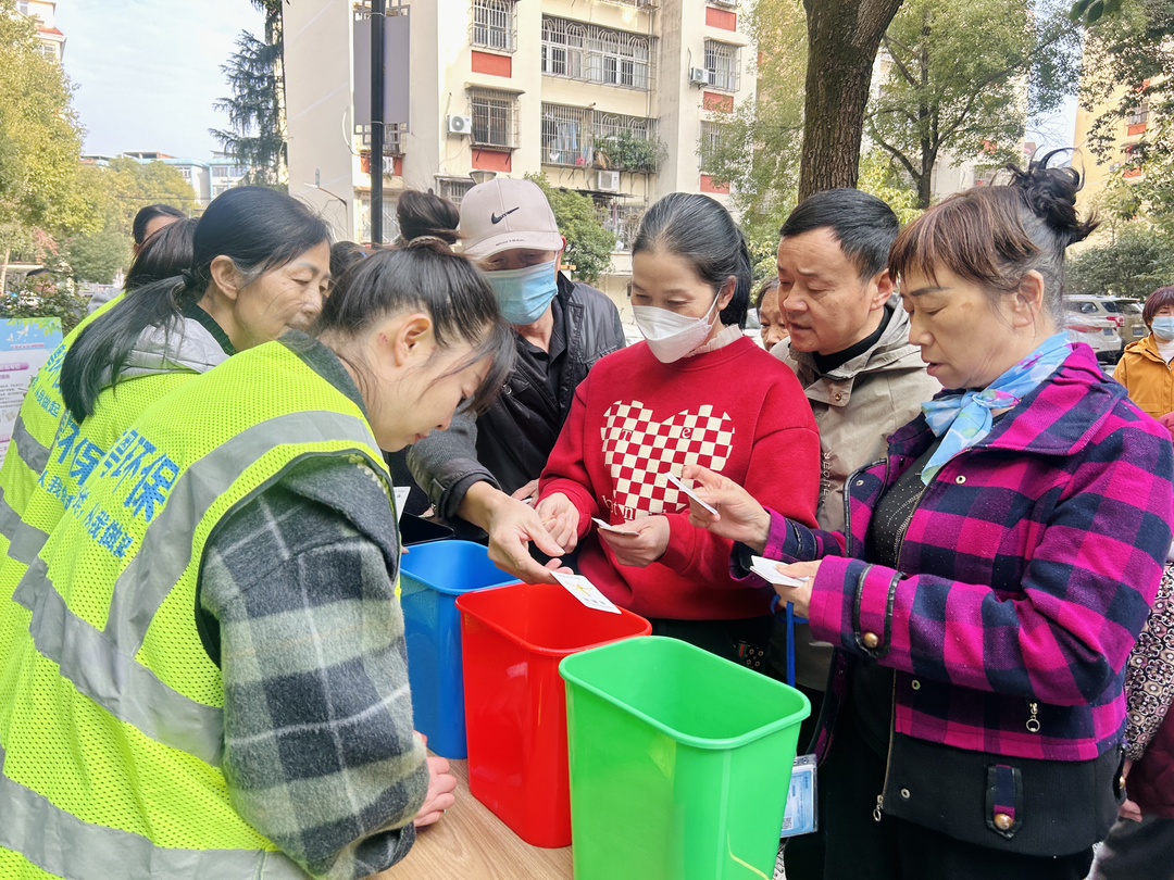 互动体验环节,居民手持垃圾小卡片,认真辨别后投入对应垃圾桶,精准投放者收获环保小礼品;分类大转盘、丢沙包等趣味游戏,让大家在玩乐中巩固分类知识;知识问答环节,居民举手抢答踊跃,现场氛围热烈。针对行动不便的居民,志愿者上门“一对一”讲解;宣传小队逐户发放《生活垃圾精准分类指导手册》,结合居民生活习惯细致答疑,确保宣传“不漏一户”。
