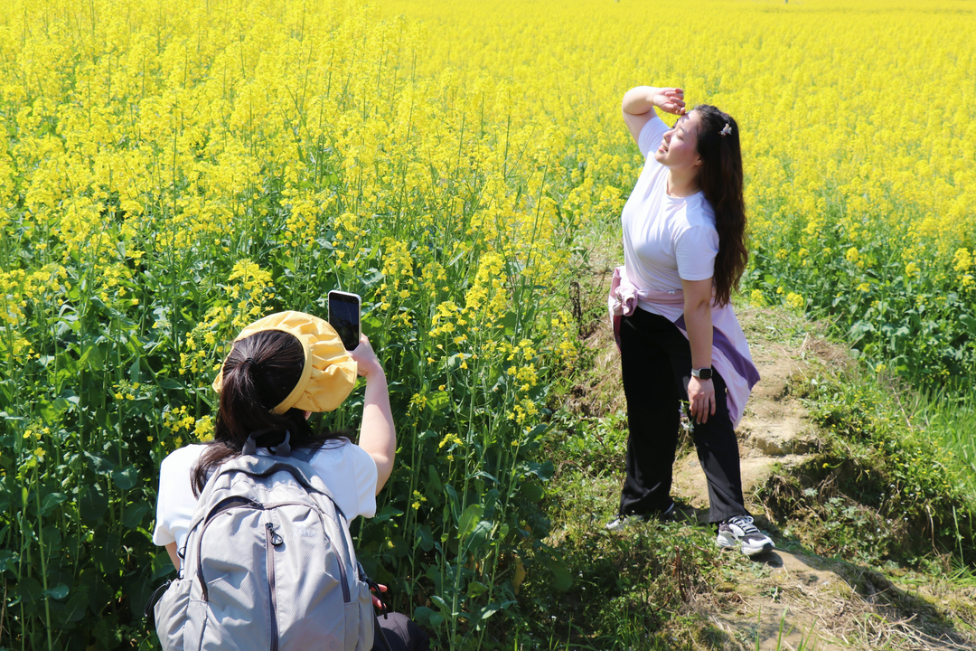 漫步花间步道,花浪起伏,满目皆是醉人春光。游客纷纷驻足打卡拍照,用镜头定格灿烂笑脸,珍藏这份春日诗意。