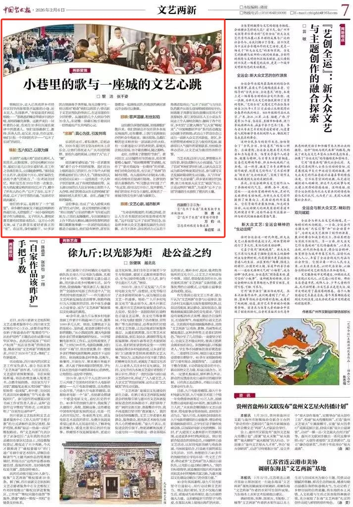 线上,新媒体矩阵持续发力,通过线上展播、创作故事分享等形式,打破时空限制,让萍乡的歌曲、剧本、书画、曲艺通过屏幕走进千家万户。同时,萍乡深耕新大众文艺,聚焦普通人创作者,联合《萍乡日报》等主流媒体,集中宣传视障作家童中平、网络歌手周群等代表人物,其中童中平的作品《按摩》登上《文艺报》,其创作故事整版刊发,引发广泛关注与好评,让平凡人的文艺力量被更多人看见。