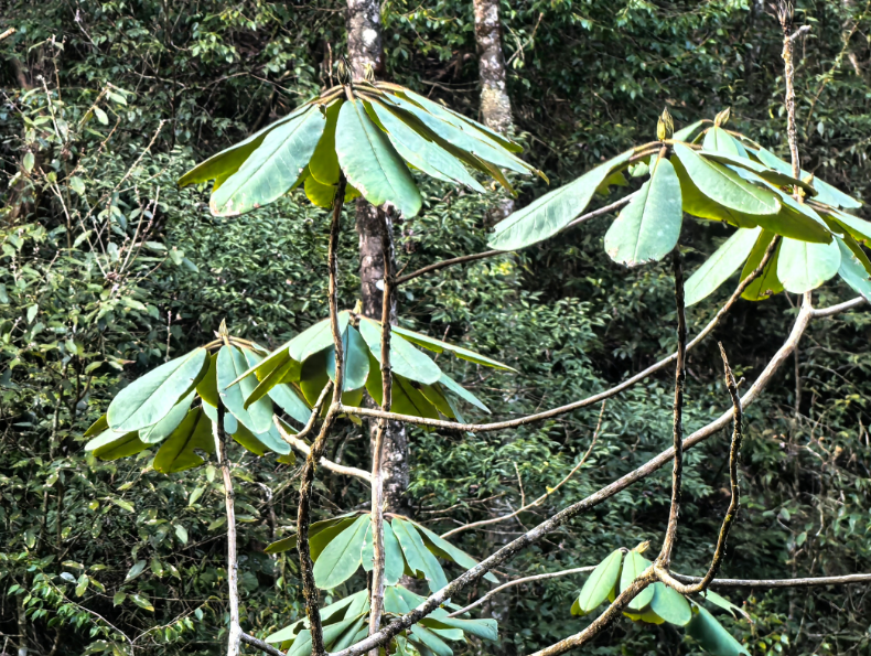 更令人欣喜的是,在增强型回归地里,那株几十年来被遮蔽在密林下、长势严重衰退、已多年未开花的成年小溪洞杜鹃,经过团队对生境的改良,今年已有大量花苞,即将迎来久违的绽放。