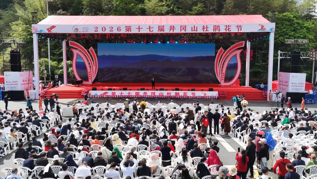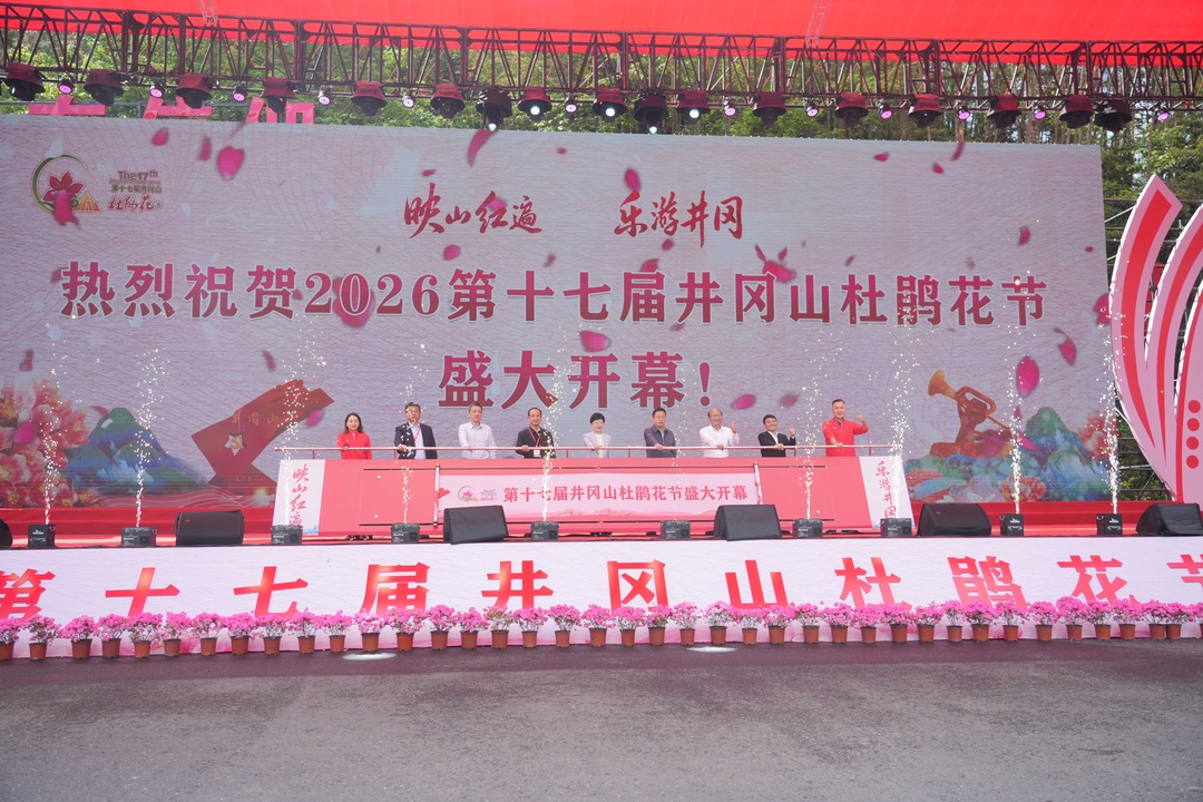 大江新闻讯 记者曾风报道:春风拂翠岭,杜鹃映井冈。4月18日,2026第十七届井冈山杜鹃花节在井冈山游客服务中心广场正式启幕。来自五湖四海的游客、文旅客商、媒体记者、网红达人、骑行自驾爱好者与各界群众欢聚一堂,共赴春日花海之约。