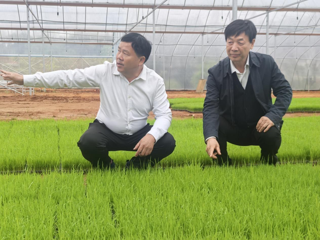 江西知名学者王国龙在湘东区委党校完成全区科级干部培训班授课后,不顾雨后泥泞,冒雨赶赴三角池村,皮鞋沾满泥点仍兴致不减。他专程走进新农人胡志辉创办的湘赣农林生态有限公司,实地调研这家扎根乡土的农林企业,查看棚内绿意满盈的工厂化育秧场景、浓雾弥漫的育种温室,以及变废为宝的秸秆库房、智能化农机库房、稻谷风干库房、营养土加工库房……