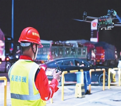 车辆救援人员使用高性能无人机