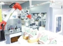 位于石城县古樟工业园的赣州新旭晖鞋业发展有限公司运动鞋成型车间内,机械臂精准制作订单产品 温京燕摄