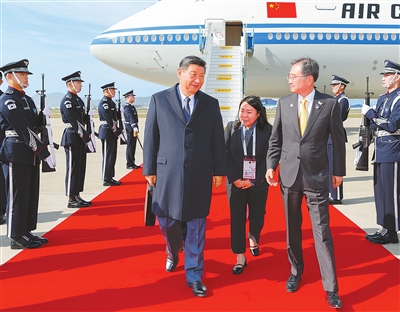 当地时间10月30日上午,国家主席习近平乘专机抵达韩国,应大韩民国总统李在明邀请,出席亚太经合组织第三十二次领导人非正式会议并对韩国进行国事访问。这是习近平抵达釜山金海国际机场时,韩国外长赵显等高级官员热情迎接。新华社记者 黄敬文摄