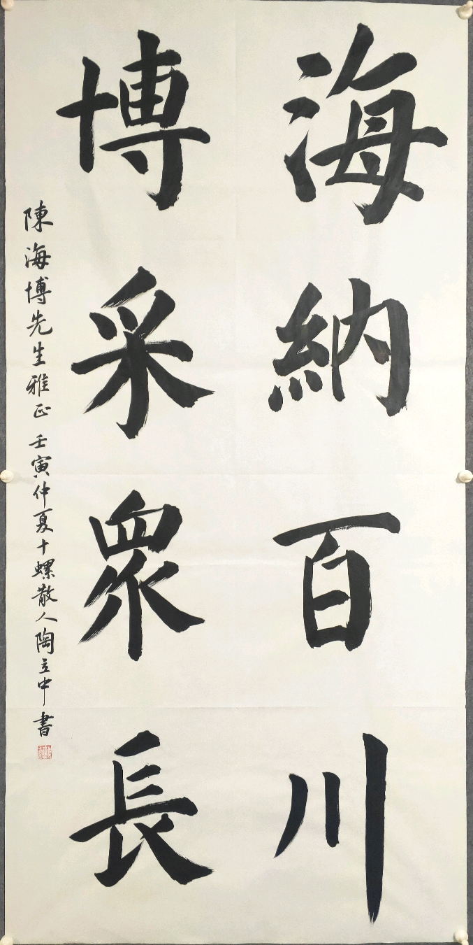 拿云阁陶立中楷书近作欣赏2022-07-12 21:54 阅读 拿云阁视界关注公号陈海博先生是上海某集团公司高管,为人睿智谦和,工作思路细致缜密。拿云阁陶立中荣幸与陈总有工作上的交集,适逢其来南昌视察指导,偶谈及书法,特以嵌入陈总名字的两个成语“海纳百川,博采众长”,书写一幅楷书作品以赠,以资留念。打开APP阅读全文 特别声明以上内容(包括但不限于文字、图片、视频)为大江新闻用户上传并发布,仅代表该作者观点,内容均由作者自负版权等法律责任,大江新闻客户端仅提供信息发布平台。