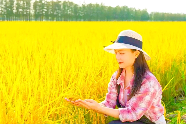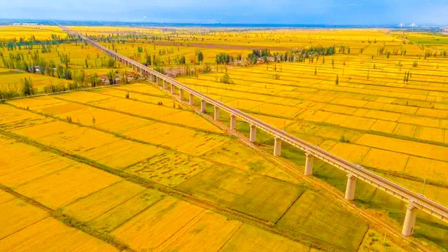 见一块块金色稻田