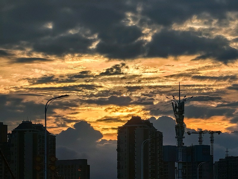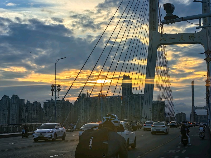 落日余晖,夕阳西下,落霞与八一大桥共舞