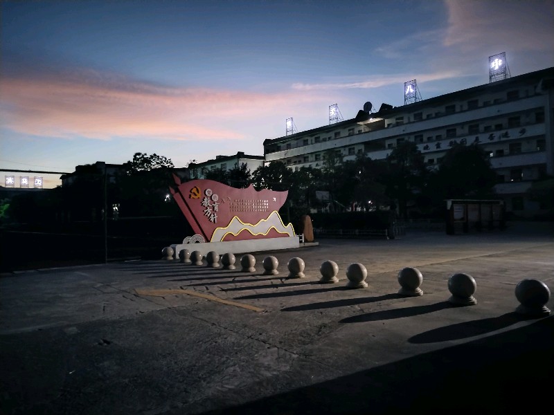 “落霞与红旗齐飞,夏树共长天一色。”,夏天像一个魔术师甩着斗篷潇洒的走来,魔术棒一挥,金色的余晖与鲜艳的党旗交相辉映,给静谧的校园带来了崭新的景色!